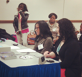 District State Attorney at Promising Future table during 2013 annual anti-violence youth summit